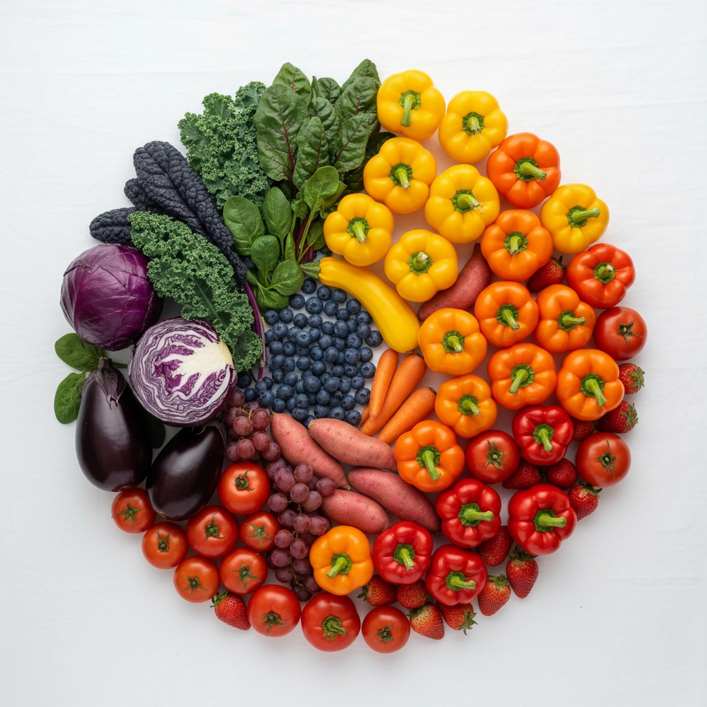 Aim for 4–5 cups produce/day; include at least 2 colors per meal.